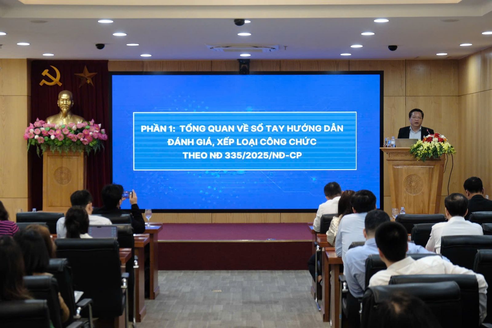 Tham dự và trực tiếp truyền đạt nội dung tại hội nghị có ông Nguyễn Văn Bình và ông Nguyễn Văn Đảm, chuyên viên cao cấp, Vụ Công chức, viên chức, Bộ Nội vụ; cùng ông Nguyễn Đức Tú, chuyên gia tư vấn.