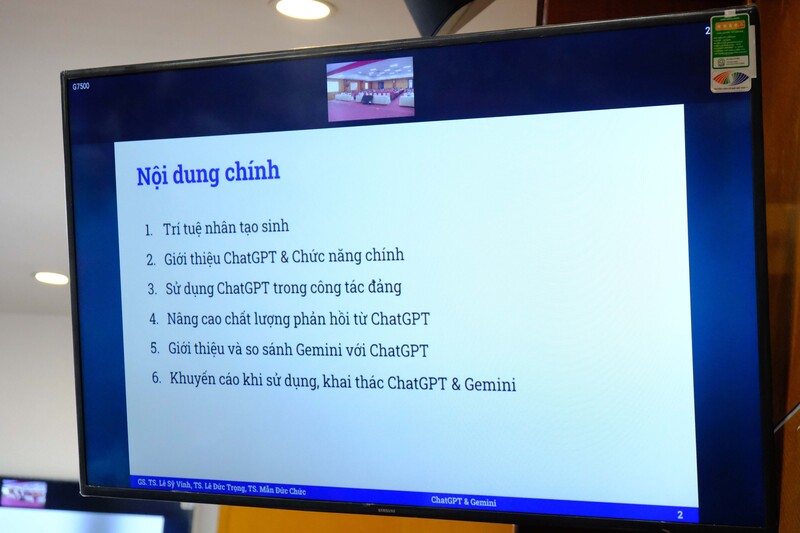 Điểm nhấn của chương trình tập huấn là sự tham gia giảng dạy của các chuyên gia công nghệ hàng đầu đến từ Trường Đại học Công nghệ, Đại học Quốc gia Hà Nội, gồm GS.TS Lê Sỹ Vinh, TS. Lê Đức Trọng và TS. Mẫn Đức Chức. Các giảng viên tập trung giới thiệu và hướng dẫn sử dụng các công cụ AI phổ biến hiện nay như ChatGPT, Gemini, Notion AI và Canva AI. Đây là những công cụ có khả năng xử lý ngôn ngữ tự nhiên, hỗ trợ phân tích, tóm tắt tài liệu, xây dựng báo cáo và soạn thảo văn bản, xử lý hình ảnh, những kỹ năng thiết yếu trong công việc của cán bộ, đảng viên.
