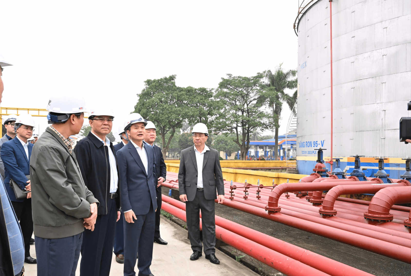 Quyền Bộ trưởng Lê Mạnh Hùng đến kiểm tra tại Công ty TNHH MTV Petrolimex Hà Nội, Tổng kho xăng dầu Đức Giang thuộc Tập đoàn Xăng dầu Việt Nam (Petrolimex)