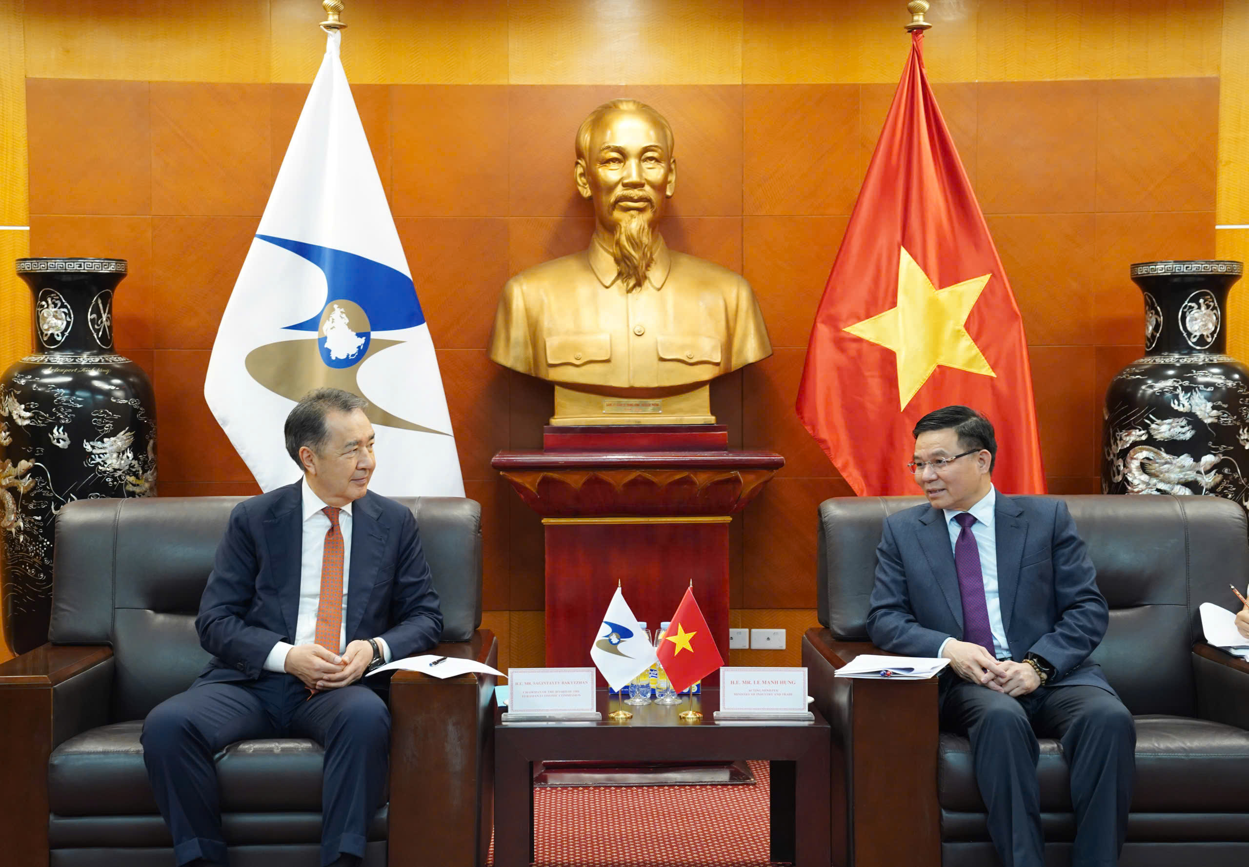 Ngày 02 tháng 3 năm 2026, tại Trụ sở Bộ Công Thương, Quyền Bộ trưởng Bộ Công Thương Việt Nam Lê Mạnh Hùng đã có buổi làm việc với Chủ tịch Hội đồng Ủy ban Kinh tế Á-Âu (EEC) Bakytzhan Sagintayev nhân dịp Ngài Chủ tịch sang thăm và làm việc tại Việt Nam.