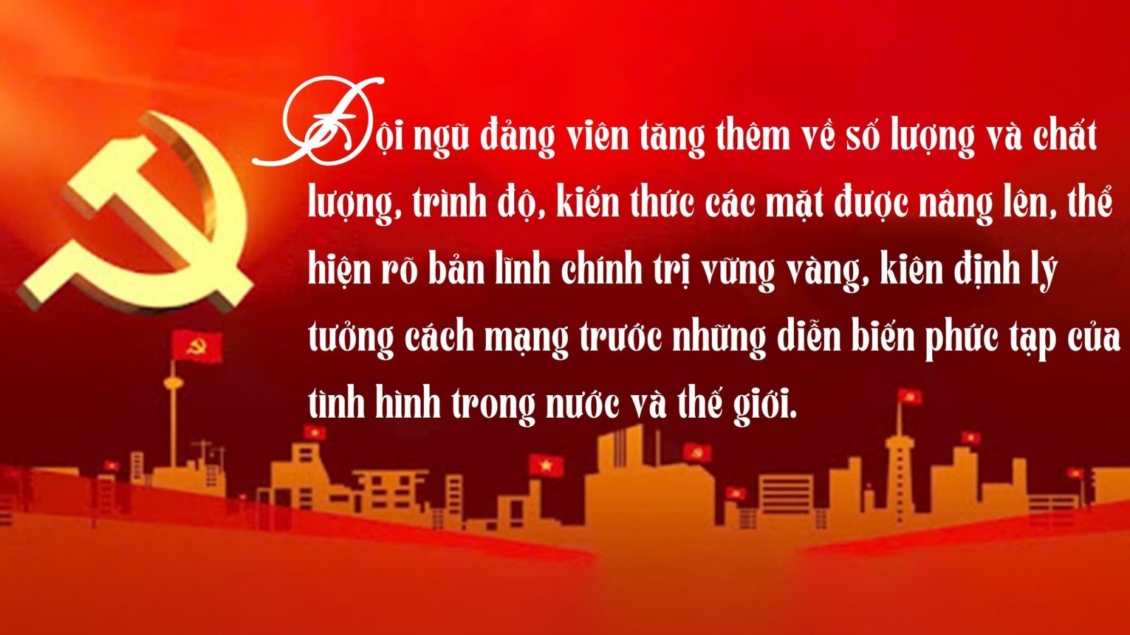Đội ngũ đảng viên tăng thêm về số lượng và chất lượng, trình độ, kiến thức các mặt được nâng lên, thể hiện rõ bản lĩnh chính trị vững vàng, kiên định lý tưởng cách mạng trước những diễn biến phức tạp của tình hình trong nước và thế giới. Nhiều cấp ủy viên, cán bộ, đảng viên được rèn luyện, thử thách, trưởng thành qua thực tiễn công tác; thực hiện tốt vai trò, vị trí, nhiệm vụ của người đảng viên, gương mẫu thực hiện chủ trương, đường lối của Đảng, chính sách, pháp luật của Nhà nước; chấp hành nghiêm túc các nguyên tắc trong tổ chức và sinh hoạt đảng; hoàn thành tốt nhiệm vụ được giao, trong đó nhiều đảng viên trẻ được đào tạo cơ bản, có đủ phẩm chất và năng lực, từng bước thích ứng, đáp ứng yêu cầu, nhiệm vụ của thời kỳ mới.