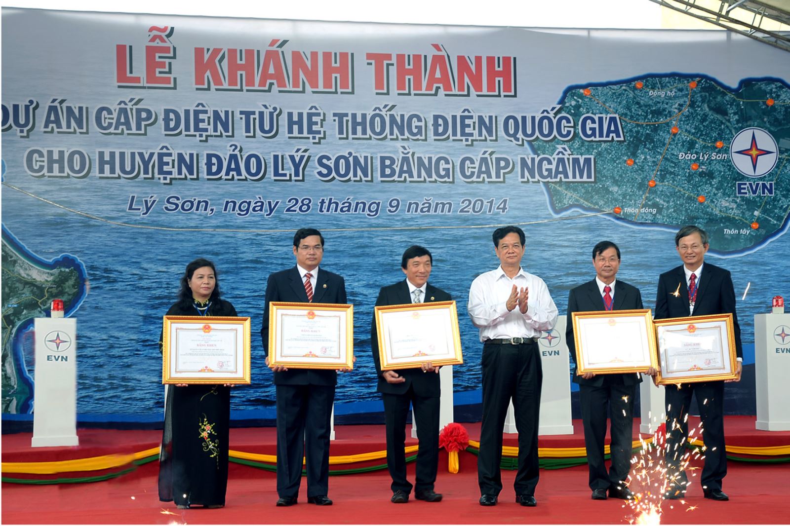 Ngày 28⁄9⁄2014, tại huyện đảo Lý Sơn (tỉnh Quảng Ngãi), Tập đoàn Điện lực Việt Nam phối hợp với UBND tỉnh Quảng Ngãi tổ chức Lễ Khánh thành Dự án cấp điện từ hệ thống điện Quốc gia cho huyện đảo Lý Sơn bằng cáp ngầm.
