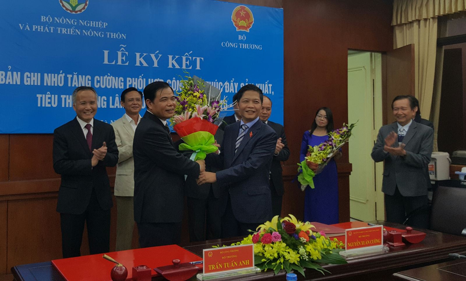 Trước bối cảnh nêu trên, để phát huy vai trò quản lý nhà nước của hai Bộ trong thời gian tới và tăng cường hơn nữa sự phối hợp đồng bộ giữa các đơn vị trực thuộc trong công tác triển khai thực hiện các giải pháp thúc đẩy sản xuất, tiêu thụ nông lâm thủy sản theo hướng nâng cao chất lượng và giá trị gia tăng trong khuôn khổ Đề án tái cơ cấu ngành nông nghiệp, trong đó tập trung nhấn mạnh vào công tác trao đổi thông tin, tháo gỡ rào cản phi thuế quan và mở cửa thị trường, đặc biệt trong bối cảnh hội nhập kinh tế quốc tế sâu và rộng như hiện nay, đảm bảo công tác chỉ đạo, điều hành của hai Bộ được thông suốt, hiệu lực, hiệu quả, Bộ trưởng Bộ Công Thương Trần Tuấn Anh và Bộ Trưởng Bộ Nông nghiệp và Phát triển nông thôn Nguyễn Xuân Cường đã thống nhất ký kết Bản ghi nhớ về tăng cường phối hợp công tác giữa hai Bộ để thúc đẩy sản xuất, tiêu thụ nông lâm thủy sản giai đoạn 2016 - 2020, kèm theo là Bản Kế hoạch triển khai một số nội dung về đàm phán tháo gỡ rào cản, mở cửa thị trường mà hai Bộ cần tập trung phối hợp thực hiện trong 2 tháng cuối năm 2016 và 6 tháng đầu năm 2017.