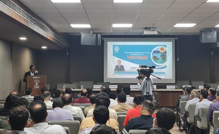 Trong thời gian làm việc tại bang Gujarat, Đại sứ quán Việt Nam tại Ấn Độ đã phối hợp Phòng Thương mại và Công nghiệp Nam Gujarat tổ chức diễn đàn thương mại đầu tư tại thành phố Surat, trao đổi cơ hội hợp tác trong các lĩnh vực có nhiều tiềm năng hợp tác kinh doanh như dệt may, dược phẩm và hóa chất.