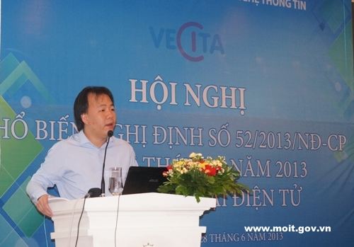 Phát biểu tại Hội nghị, ông Trần Hữu Linh – Cục trưởng Cục Thương mại điện tử và Công nghệ thông tin, Bộ Công Thương cho biết: “Nghị định số 52/2013/NĐ-CP ra đời là hết sức kịp thời và cần thiết đối với hoạt động TMĐT tại Việt Nam. Hành lang pháp lý hoàn thiện và chặt chẽ sẽ tạo điều kiện để TMĐT phát triển, góp phần nâng cao sức cạnh tranh của doanh nghiệp và xây dựng các tập quán thương mại hiện đại cho Việt Nam.”