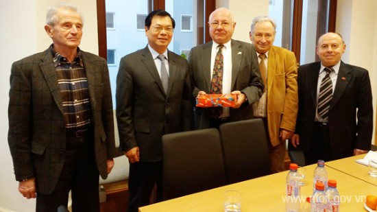 Bộ trưởng Vũ Huy Hoàng và đoàn công tác của Bộ Công Thương cũng đến thăm Đại sứ quán Việt Nam tại Đức.