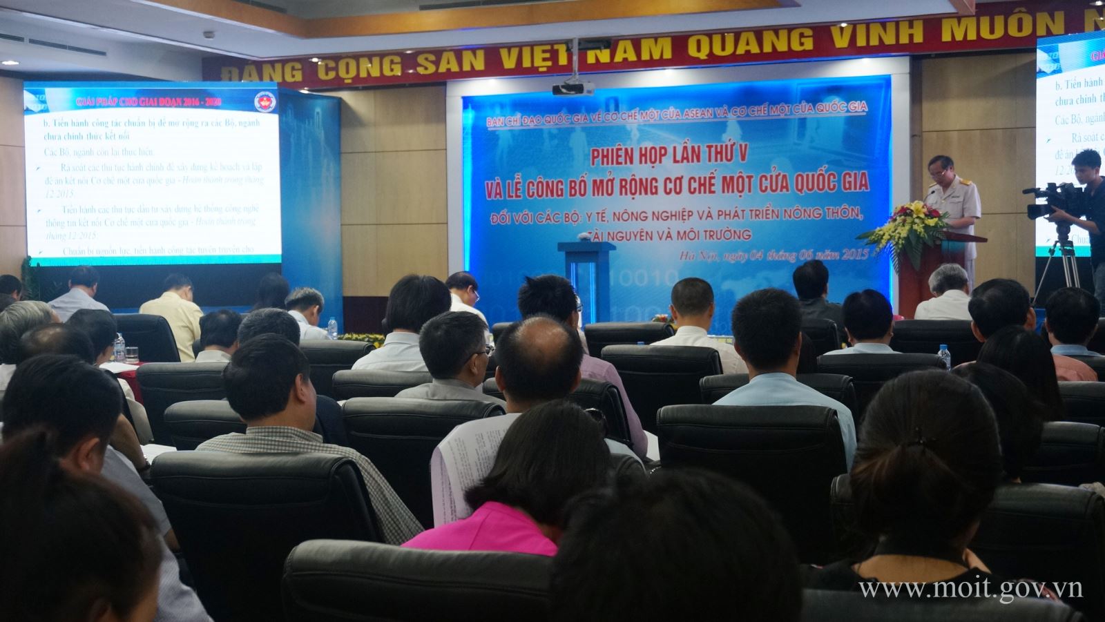 Báo cáo tình hình triển khai Cơ chế một cửa quốc gia và ASEAN, đại diện Cơ quan thường trực Ban Chỉ đạo quốc gia cho biết, triển khai giai đoạn 1 Cơ chế một cửa quốc gia, ngày 25/12/2014, Bộ Công Thương đã phối hợp với Bộ Tài chính (Tổng cục Hải quan) chính thức kết nối Cơ chế một cửa quốc gia. Ba thủ tục của Bộ Công Thương được thực hiện trên một cửa quốc gia gồm: Cấp chứng nhận xuất xứ hàng hóa (C/O) mẫu D; Cấp phép nhập khẩu chất làm suy giảm tầng ô-zôn; Cấp giấy phép nhập khẩu ô tô phân khối lớn.