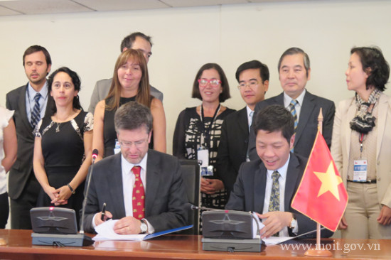 Thứ trưởng Trần Tuấn Anh và đại diện được ủy quyền của Chính phủ Chile, ông Pablo Urria, ký biên bản Phiên họp
