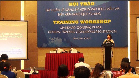 Chia sẻ về quy định chung về kiểm soát HĐTM & ĐKGDC và kết quả hoạt động trong năm 2014 tại Việt Nam, bà Trần Diệu Loan, Phó trưởng phòng Kiểm soát hợp đồng theo mẫu, điều kiện giao dịch chung, Cục Quản lý cạnh tranh, Bộ Công Thương cho biết, trong 6 tháng đầu năm 2014, đã có 623 doanh nghiệp được thanh kiểm tra trên cả nước, mội địa phương có từ 6-10 doanh nghiệp được kiểm tra. Việc kiểm tra được thực hiện trên các lĩnh vực như: chung cư, viễn thông, điện nước và vận tải. Trong số các doanh nghiệp được thanh, kiểm tra, có 82% đối tượng đã chấp hành các quy định pháp luật, trong đó tại các Sở Công Thương chiếm khoảng 57%, tại Cục Quản lý cạnh tranh khoảng 43%. Còn lại 17,8% các doanh nghiệp chưa thực hiện, chủ yếu các vi phạm diễn ra ở các mặt như chưa đăng ký HĐTM, ĐKGDC tại thời điểm kiểm tra, ký kết HĐTM, ĐKGDC trước khi có văn bản chấp nhận của cơ quan bảo vệ quyền lợi người tiêu dùng, không thực hiện yêu cầu của cơ quan Nhà nước về sửa đổi nội dung vi phạm, v.v... Chính vì vậy các Sở Công Thương có các doanh nghiệp vi phạm đã xử phạt từ 10 đến 80 triệu đồng đối với các hành vi vi phạm như: cỡ chữ trong hợp đồng nhỏ hơn quy định; không đăng ký HĐTM, ĐKGDC; không thực hiện sửa đổi nội dung vi phạm theo yêu cầu của cơ quan Nhà nước.