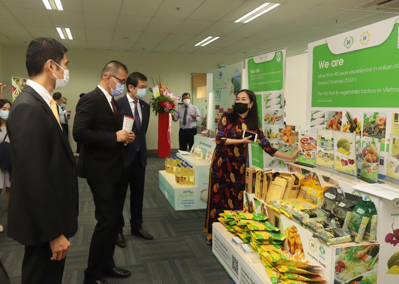 Trong bối cảnh dịch Covid 19 đang diễn biến phức tạp, Đại sứ quán Việt Nam tại Singapore và Bộ Công Thương (Cục Xúc tiến thương mại và Thương vụ Việt Nam tại Singapore) đã linh hoạt triển khai các giải pháp để hỗ trợ các doanh nghiệp trong nước tháo gỡ khó khăn, mở rộng thị trường xuất khẩu cho sản phẩm hàng hóa Việt Nam, đặc biệt là các sản phẩm nông nghiệp chế biến sâu, có giá trị gia tăng cao, đạt Thương hiệu quốc gia.