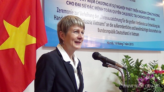 Bộ trưởng Vũ Huy Hoàng nhấn mạnh: Kỷ niệm chương này là sự ghi nhận của Nhà nước Việt Nam, của Bộ Công Thương đối với một cá nhân xuất sắc, thể hiện sự trân trọng với một tấm lòng cao quý, sự nỗ lực không mệt mỏi vì sự phát triển chung của hai nước. Việc tổ chức buổi lễ này cũng thể hiện sự cảm ơn và tri ân những đóng góp của bà Đại sứ, cũng như Đại sứ quán Cộng hòa Liên bang Đức cho sự nghiệp phát triển của ngành Công Thương Việt Nam. Bà Đại sứ cũng khẳng định sẽ tiếp tục đóng góp vào sự phát triển và làm sâu sắc hơn nữa mối quan hệ hợp tác hữu nghị giữa hai nước Việt Nam – Cộng hòa Liên bang Đức.