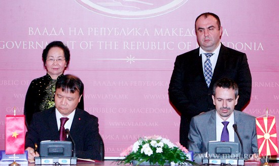 Ngày 02/12/2014, tại Skopie - Thủ đô nước Cộng hòa Macedonia, trước sự chứng kiến của Phó Chủ tịch nước Nguyễn Thị Doan và Thủ tướng Chính phủ Cộng hòa Macedonia - Ngài Nikola Gruevski, Thứ trưởng Bộ Công Thương Đỗ Thắng Hải và Bộ trưởng Bộ Kinh tế Macedonia ngài Bekim Neziri đã ký Hiệp định Hợp tác Kinh tế giữ hai nước.