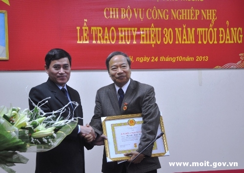Thay mặt Đảng ủy Bộ Công Thương, Thứ trưởng Lê Dương Quang đã trao tặng Huy hiệu 30 năm tuổi Đảng cho nguyên Thứ trưởng Nguyễn Nam Hải. Theo Thứ trưởng Lê Dương Quang, đây không chỉ là vinh dự của riêng đồng chí Nguyễn Nam Hải, mà còn là vinh dự chung của Chi bộ Vụ Công nghiệp nhẹ. Mặc dù đã nghỉ công tác, song Thứ trưởng Lê Dương Quang hi vọng nguyên Thứ trưởng Nguyễn Nam Hải vẫn tiếp tục chia sẻ kinh nghiệm, chuyên môn trong các hoạt động chung của Bộ Công Thương. Thứ trưởng Lê Dương Quang nhấn mạnh, buổi lễ trao tặng hôm nay cũng là sự khích lệ động viên để Vụ Công nghiệp có thể phát huy truyền thống, bồi dưỡng được nhiều quần chúng ưu tú đứng vào hàng ngũ của Đảng.
