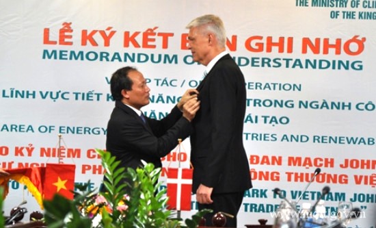 Bên lề Lễ ký kết, thay mặt Lãnh đạo Bộ Công Thương, Thứ trưởng Cao Quốc Hưng đã trao Kỷ niệm chương cho Ngài Đại sứ Đan Mạch John Nielsen vì những cống hiến và đóng góp của ông cho sự nghiệp phát triển của ngành Công Thương Việt Nam.