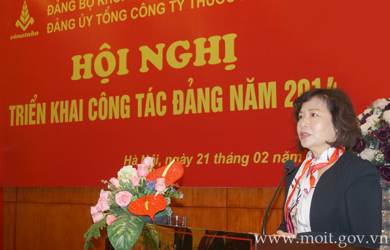 Thứ trưởng Hồ Thị Kim Thoa đã biểu dương và đánh giá cao những thành tích và kết quả đạt được của Đảng ủy Tổng công ty Thuốc lá Việt Nam - Vinataba trong năm qua. Những kết quả này đã góp phần đóng góp tích cực vào kết quả chung của ngành Công Thương. Thứ trưởng nhấn mạnh, năm 2014 tiếp tục là một năm còn ẩn chứa nhiều khó khăn, Đảng ủy Tổng Công ty cần tiếp tục phát huy các thế mạnh và nỗ lực hoàn thành các mục tiêu đặt ra như: quyết liệt chống thuốc lá nhập lậu, phát triển kênh nguyên liệu, vấn đề tái cơ cấu Tổng công ty, nâng cao năng lực quản trị doanh nghiệp theo hướng hiện đại và chuẩn bị tốt cho việc triển khai đại hội đảng các cấp sắp tới, quan tâm chăm sóc phát triển đời sống cán bộ công nhân viên, v.v…
