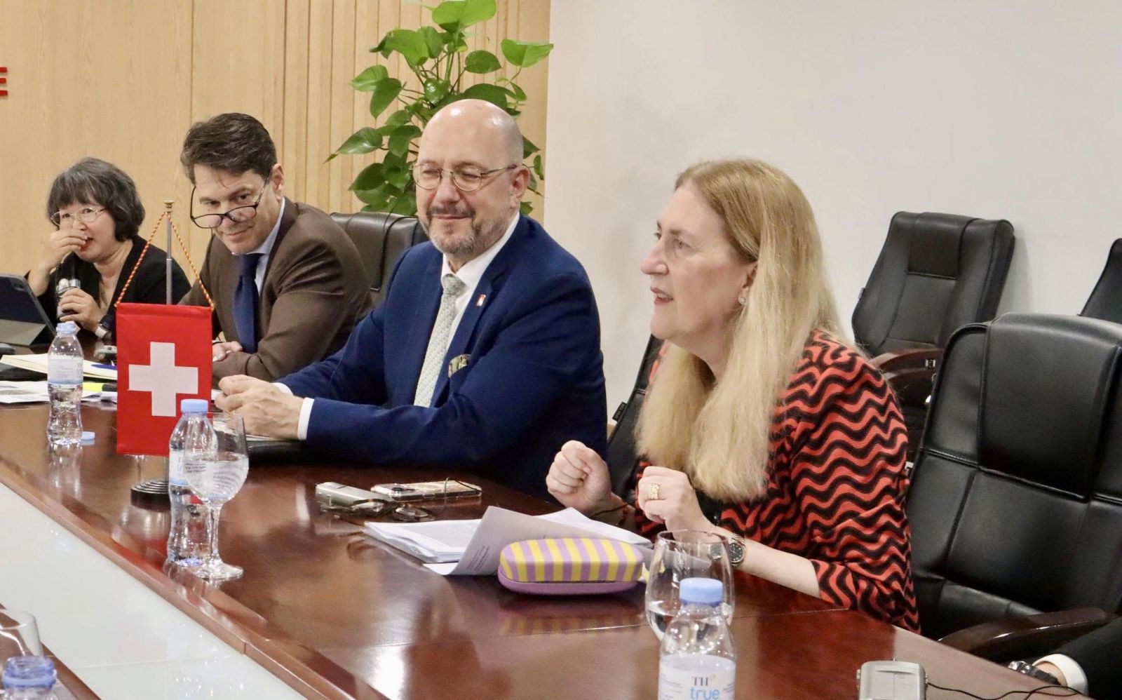 Thứ trưởng Nguyễn Sinh Nhật Tân làm việc với bà Helene Budliger Artieda, Quốc vụ khanh, Tổng cục Kinh tế Liên bang Thụy Sỹ