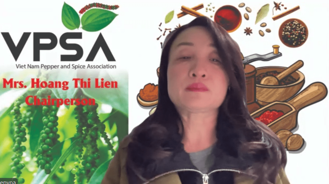 Bà Hoàng Thị Liên, Chủ tịch Hiệp hội Hồ tiêu và Cây gia vị Việt Nam, phát biểu tại hội thảo.