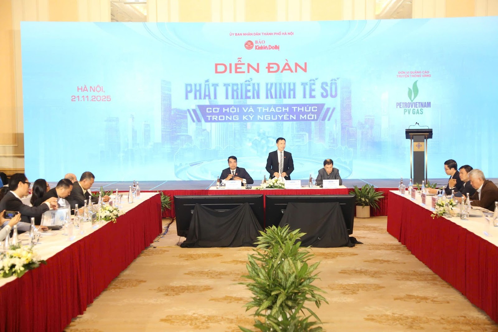 Bên cạnh phần chia sẻ của ông Nguyễn Hữu Tuấn, đại diện Cục Thương mại điện tử và Kinh tế số, các diễn giả khác tại Diễn đàn cũng đóng góp nhiều quan điểm quan trọng, góp phần phác họa đầy đủ hơn bức tranh chuyển đổi số của Việt Nam. Ông Nguyễn Phú Tiến – Phó Vụ trưởng Vụ Kinh tế số và Xã hội số (Bộ Khoa học và Công nghệ) – nhấn mạnh vai trò then chốt của khoa học, công nghệ, đổi mới sáng tạo và các nền tảng số trong việc nâng cao năng suất, tối ưu vận hành và mở rộng không gian phát triển cho doanh nghiệp. Trong khi đó, TS. Nguyễn Đức Kiên – chuyên gia kinh tế, nguyên Tổ trưởng Tổ tư vấn kinh tế của Thủ tướng Chính phủ – tập trung phân tích vai trò của chính quyền đô thị, hạ tầng dữ liệu mở và hệ thống chính sách khuyến khích doanh nghiệp số, coi đây là những yếu tố nền tảng để hiện thực hóa mục tiêu kinh tế số chiếm 30% GRDP vào năm 2030.