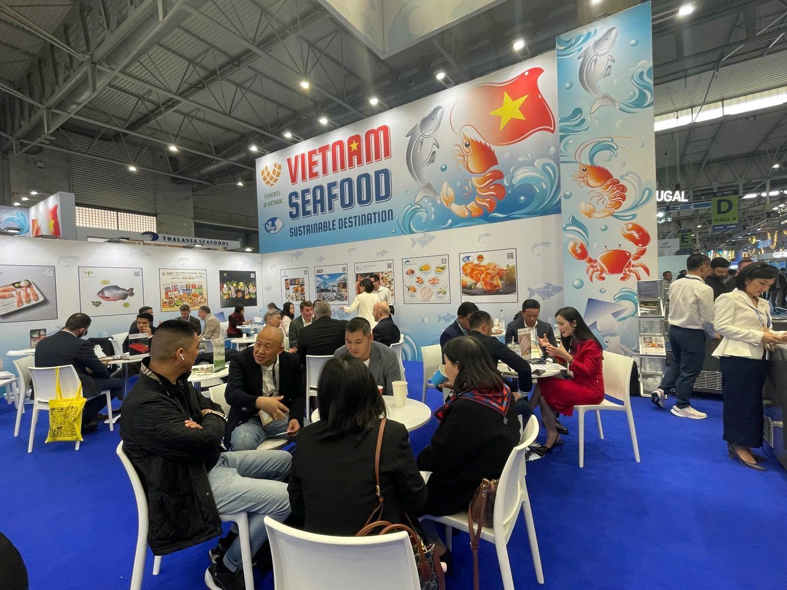 Với tổng diện tích 416 m², quy tụ gần 40 doanh nghiệp đại diện cho toàn chuỗi giá trị ngành thủy sản, gian hàng Việt Nam không chỉ giới thiệu các sản phẩm chủ lực như cá tra, tôm, cá ngừ, mà còn thể hiện năng lực chế biến sâu và đa dạng hóa sản phẩm.