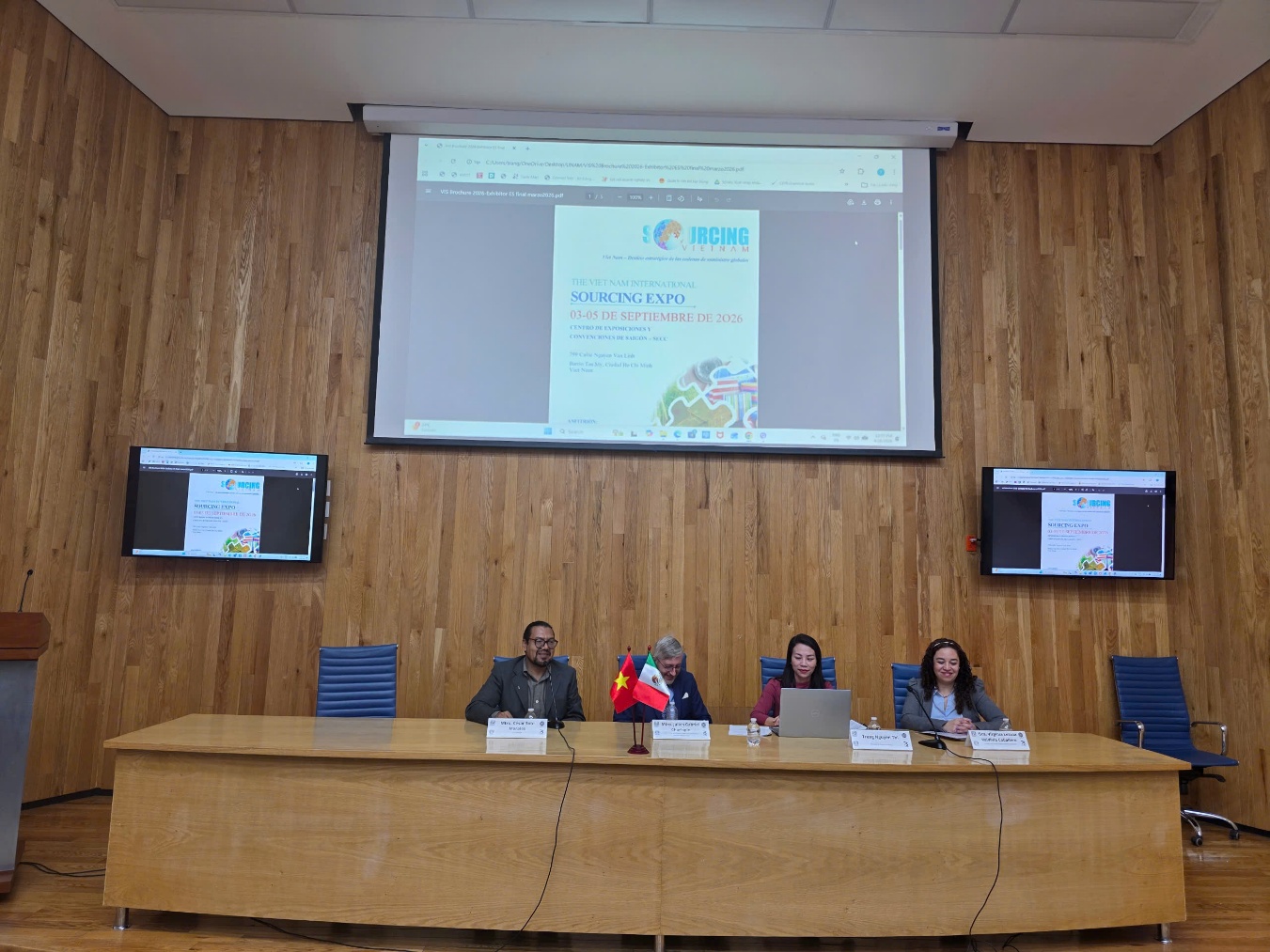 Trong khuôn khổ bài phát biểu, Thương vụ Việt Nam tại Mexico giới thiệu tới cộng đồng học thuật và doanh nghiệp Mexico về Hội chợ Vietnam International Sourcing Expo 2026 (VIS 2026), dự kiến tổ chức từ ngày 03 đến 05/9/2026 tại Trung tâm Hội chợ và Triển lãm Sài Gòn (SECC), Thành phố Hồ Chí Minh. Đây là sự kiện xúc tiến thương mại quy mô lớn do Bộ Công Thương Việt Nam chủ trì, nhằm kết nối trực tiếp các doanh nghiệp sản xuất, xuất khẩu của Việt Nam với hệ thống nhà nhập khẩu, phân phối và bán lẻ quốc tế.