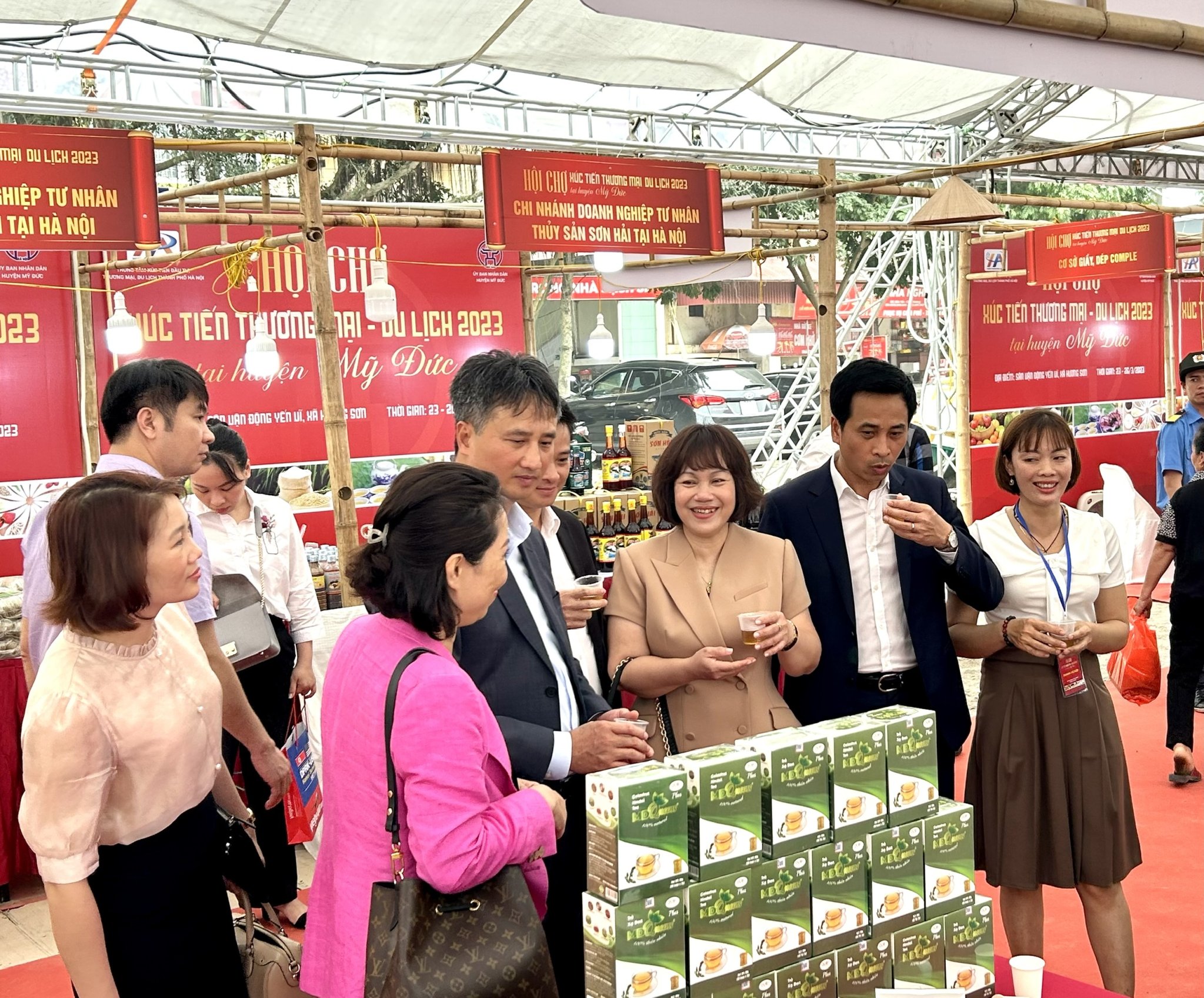 Nhằm tăng cường hoạt động xúc tiến thương mại, hỗ trợ quảng bá, mở rộng thị trường, tìm kiếm đầu ra cho sản phẩm đặc sản, đặc trưng, tiêu biểu của thành phố Hà Nội và các địa phương, sáng ngày 24/3, Trung tâm Xúc tiến Đầu tư, Thương mại, Du lịch TP. Hà Nội (HPA) chủ trì, phối hợp với UBND huyện Mỹ Đức tổ chức chương trình “Hội chợ Xúc tiến thương mại - du lịch 2023 tại huyện Mỹ Đức”.