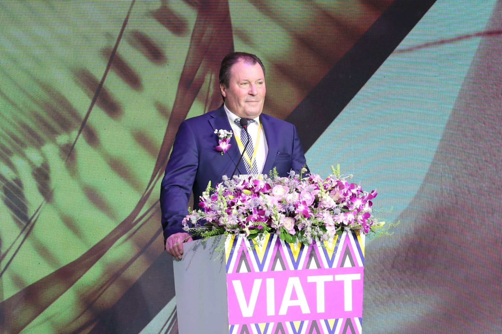 Ông Wolfgang Marzin - Chủ tịch kiêm Giám đốc điều hành Messe Frankfurt phát biểu tại lễ khai mạc VIATT 2026. Ảnh: Minh Anh