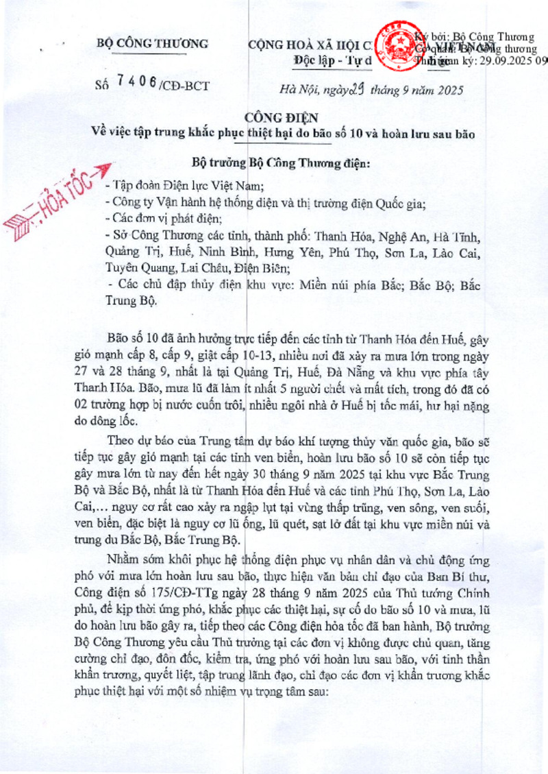 Tiêu đề văn bản | Công điện về việc tập trung khắc phục thiệt hại do bão số 10 và hoàn lưu sau bão | ||