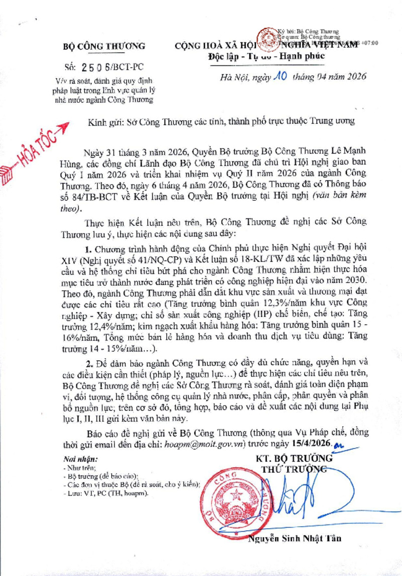 | Tiêu đề văn bản | Công văn về việc rà soát, đánh giá quy định pháp luật trong lĩnh vực quản lý nhà nước ngành Công Thương | ||