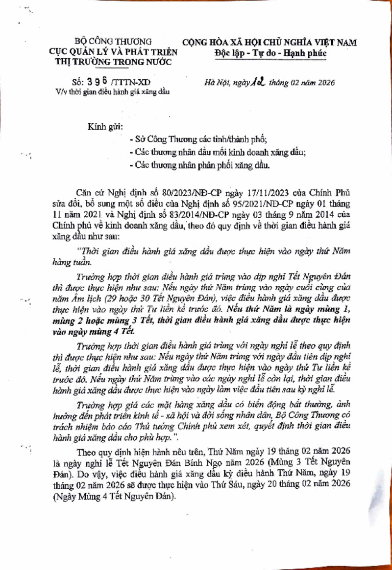 | Phạm vi | Bộ Công Thương | Ngày ban hành | 12/02/2026 |