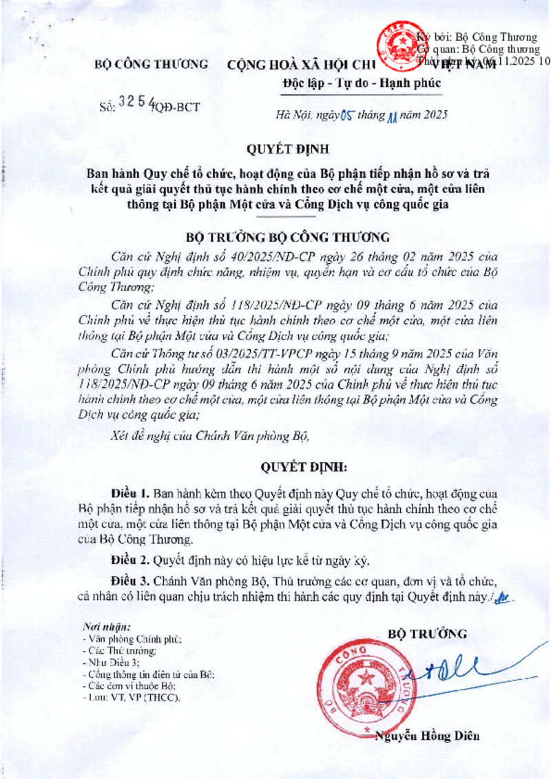 | Số hiệu | 3254/QĐ-BCT | Cơ quan ban hành | Bộ Công Thương |