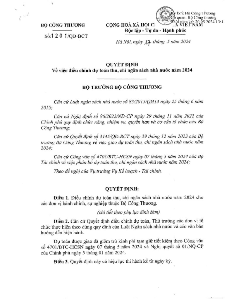 | Số hiệu | 1201/QĐ-BCT | Cơ quan ban hành | Bộ Công Thương |