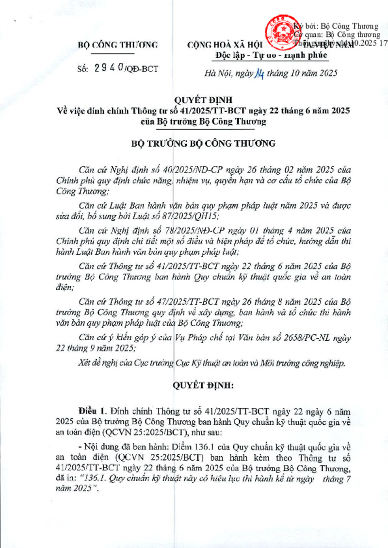 Tiêu đề văn bản | Quyết định về việc đính chính Thông tư số 41/2025/TT-BCT ngày 22/6/2025 của Bộ trưởng Bộ Công Thương | ||