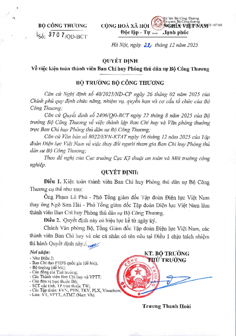 | Số hiệu | 3707/QĐ-BCT | Cơ quan ban hành | Bộ Công Thương |