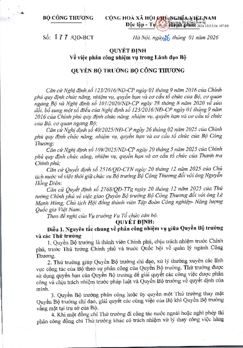 | Loại tài liệu | Quyết định | Người ký | Quyền Bộ trưởng Bộ Công Thương Lê Mạnh Hùng |