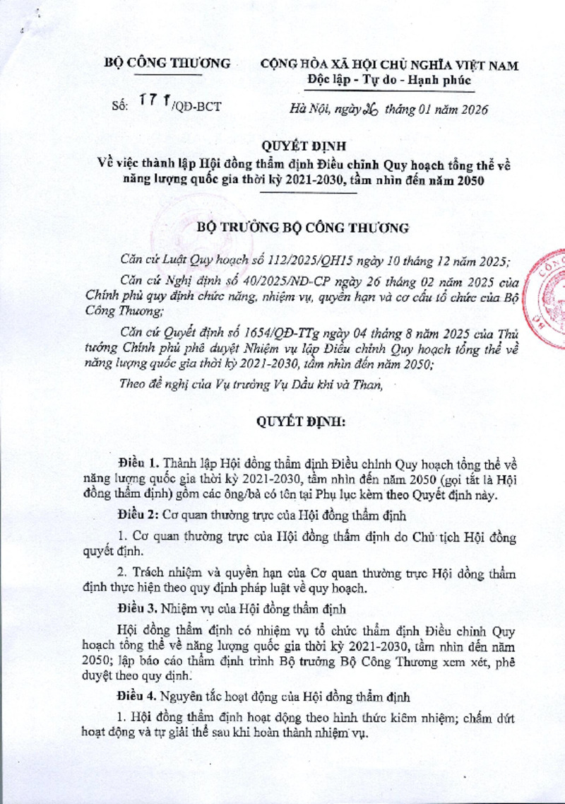 | Tiêu đề văn bản | Quyết định về việc thành lập Hội đồng thẩm định Điều chỉnh Quy hoạch tổng thể về năng lượng quốc gia thời kỳ 2021 - 2030, tầm nhìn đến năm 2050 | ||
