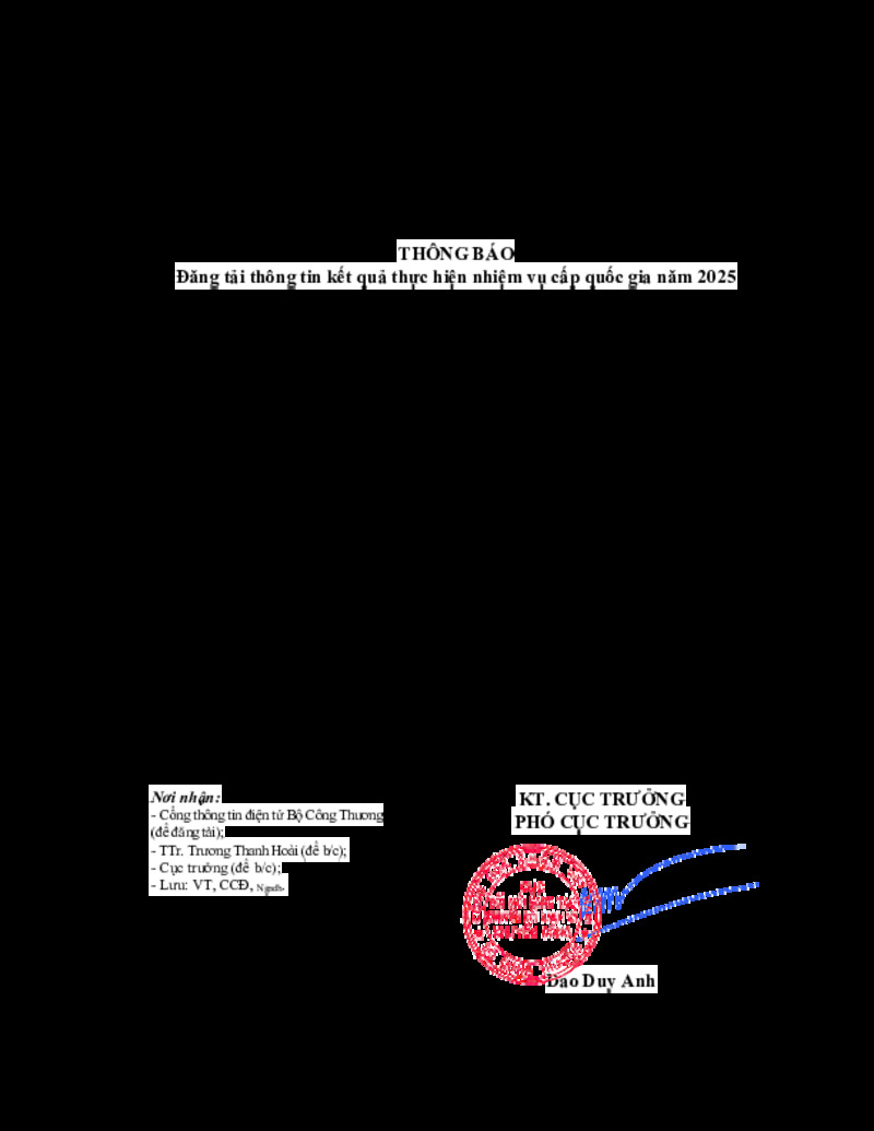 | Tiêu đề văn bản | Thông báo thông tin kết quả thực hiện nhiệm vụ cấp quốc gia năm 2025 | ||
