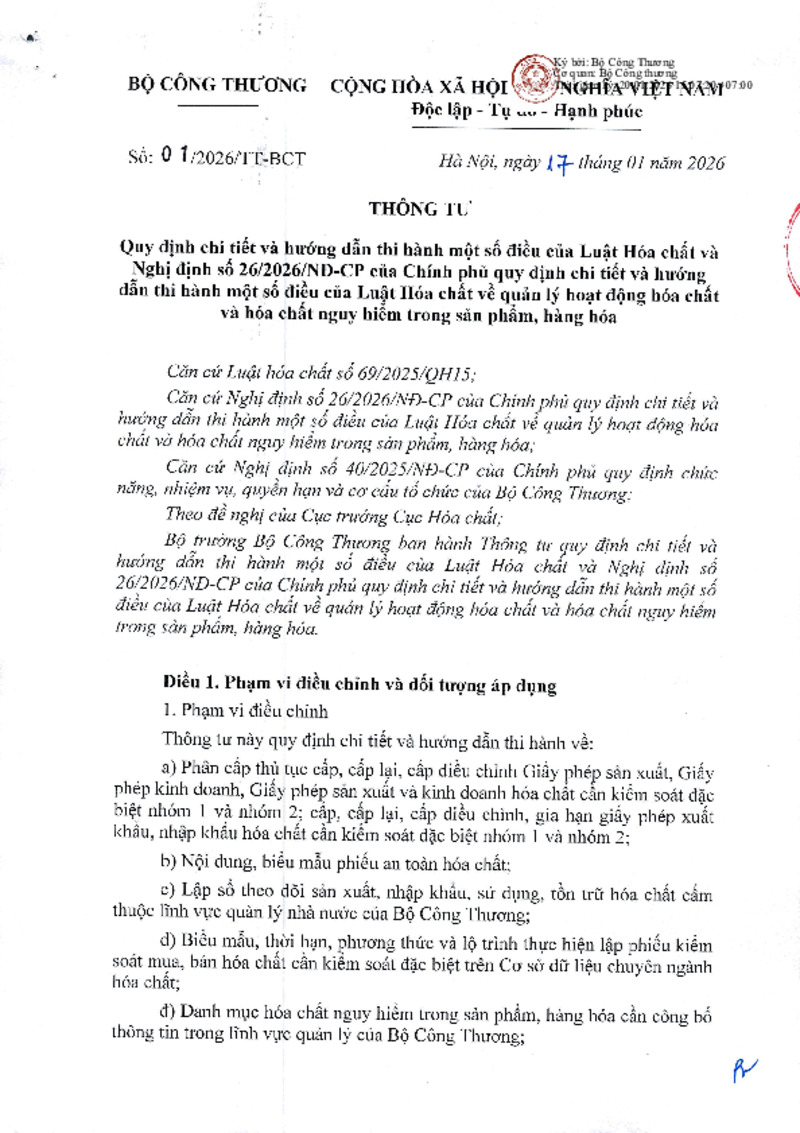 | Số hiệu | 01/2026/TT-BCT | Cơ quan ban hành | Bộ Công Thương |