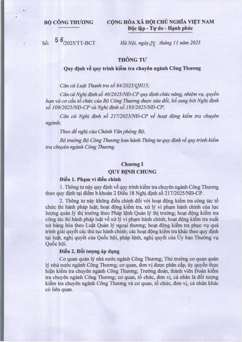 | Số hiệu | 56/2025/TT-BCT | Cơ quan ban hành | Bộ Công Thương |