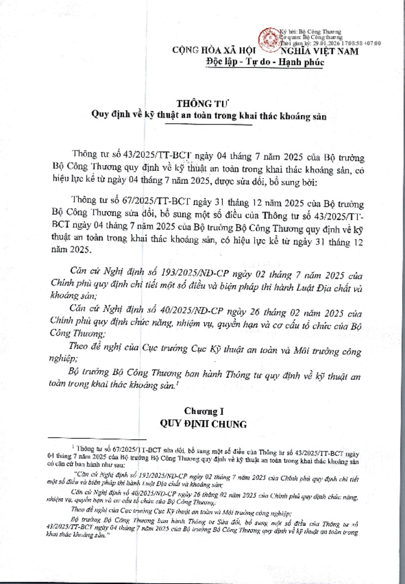 | Tiêu đề văn bản | Văn bản hợp nhất 07.2025 Thông tư quy định về kỹ thuật an toàn trong khai thác khoáng sản | ||