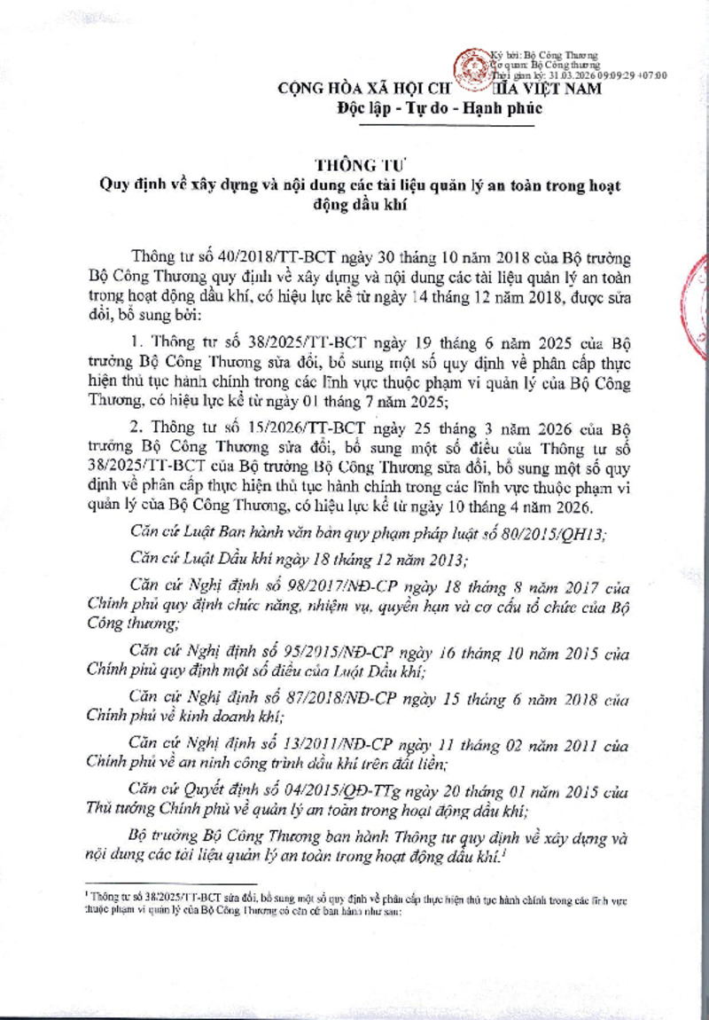 | Tiêu đề văn bản | Văn bản hợp nhất số 19- Thông tư Quy định về xây dựng và nội dung các tài liệu quản lý an toàn trong hoạt động dầu khí | ||