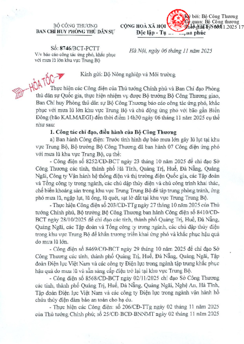 | Tiêu đề văn bản | Báo cáo công tác ứng phó, khắc phục với mưa lũ lớn khu vực Trung Bộ | ||