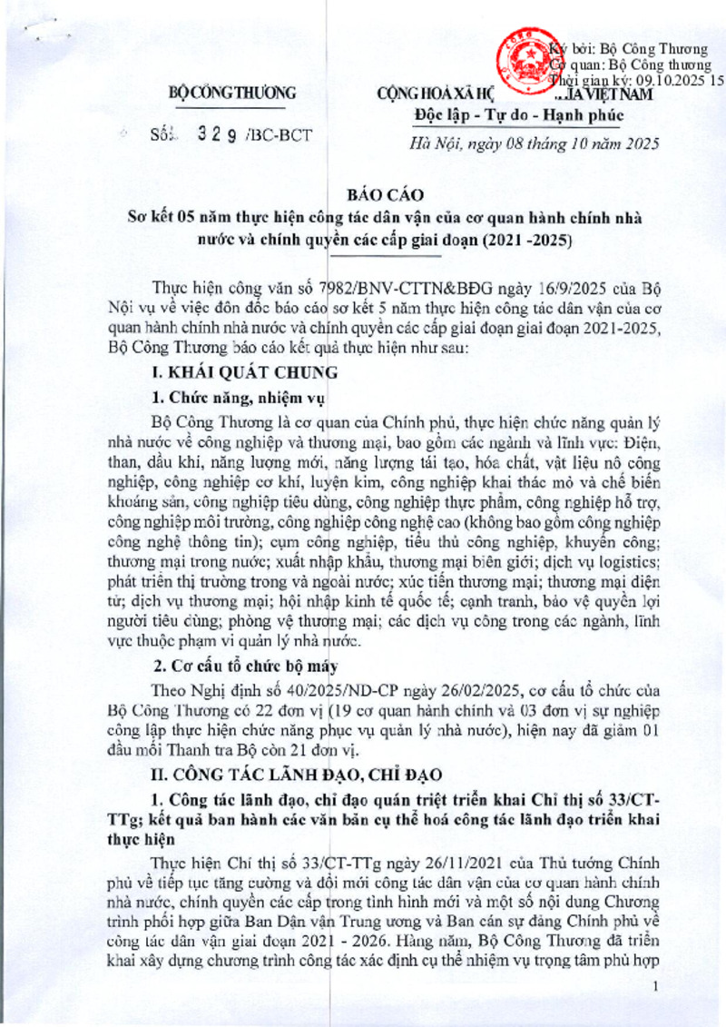 Số hiệu | 329/BC-BCT | Cơ quan ban hành | Bộ Công Thương |