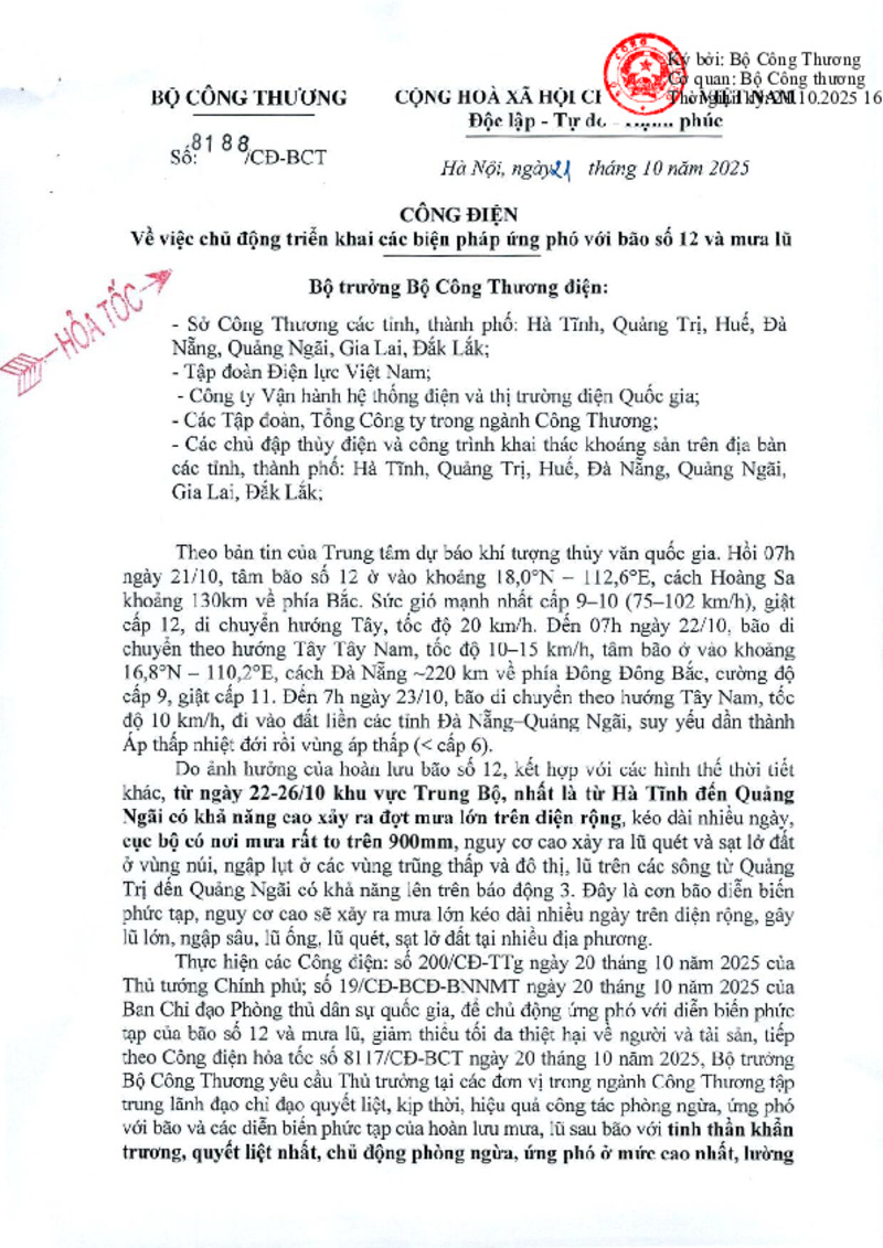 | Số hiệu | 8188/CĐ-BCT | Cơ quan ban hành | Bộ Công Thương |