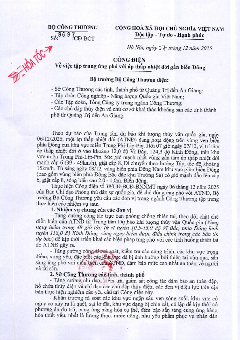 | Loại tài liệu | Công điện | Người ký | Bộ trưởng Bộ Công Thương Nguyễn Hồng Diên |