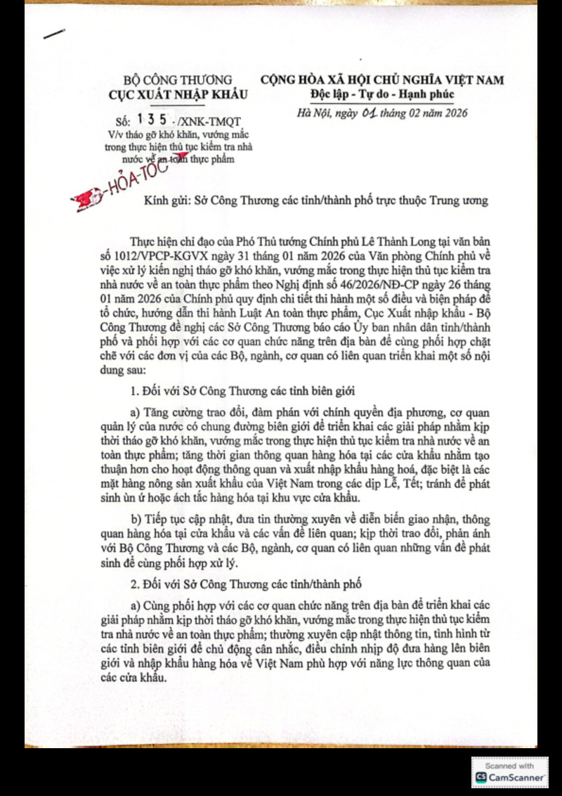 | Tiêu đề văn bản | Văn bản về việc tháo gỡ khó khăn, vướng mắc trong thực hiện thủ tục kiểm tra nhà nước về an toàn thực phẩm | ||