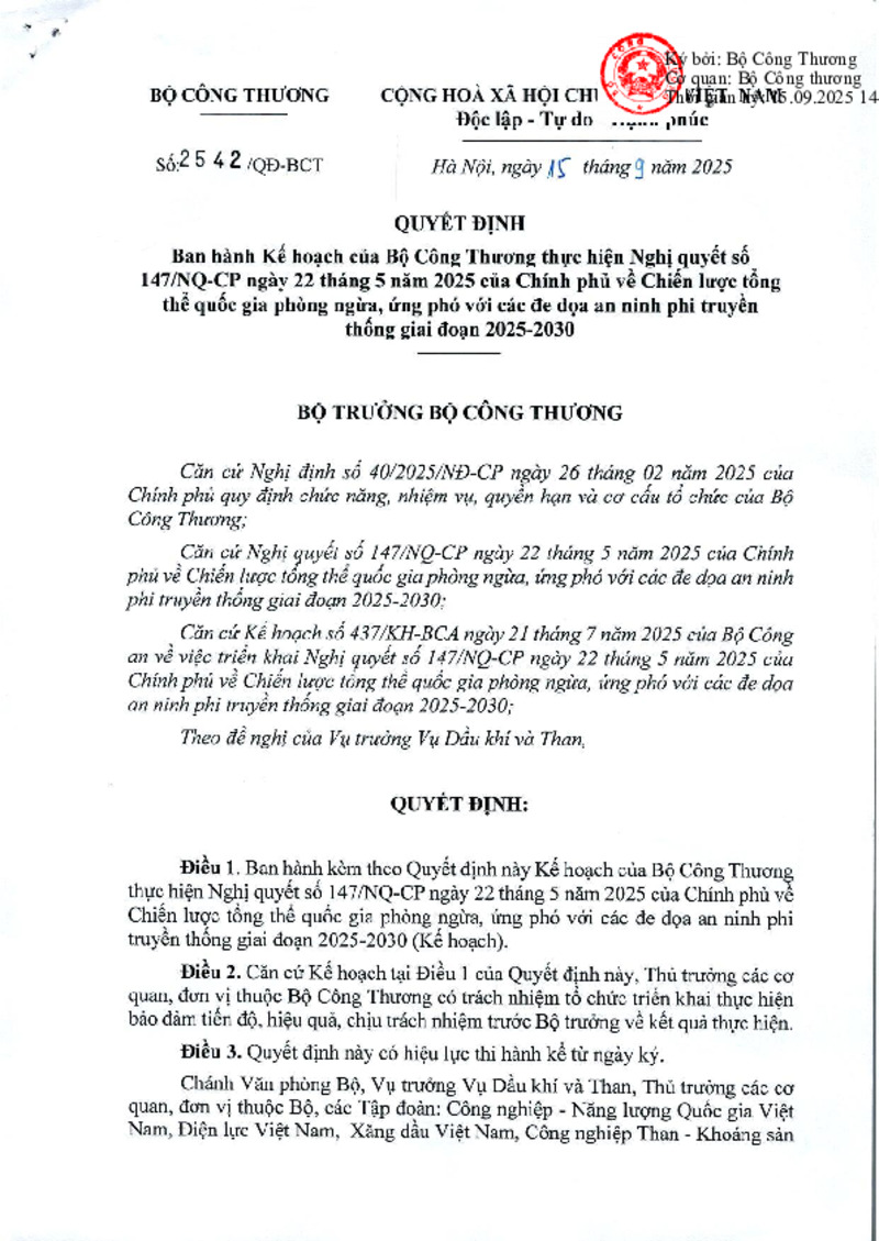 Số hiệu | 2542/QĐ-BCT | Cơ quan ban hành | |