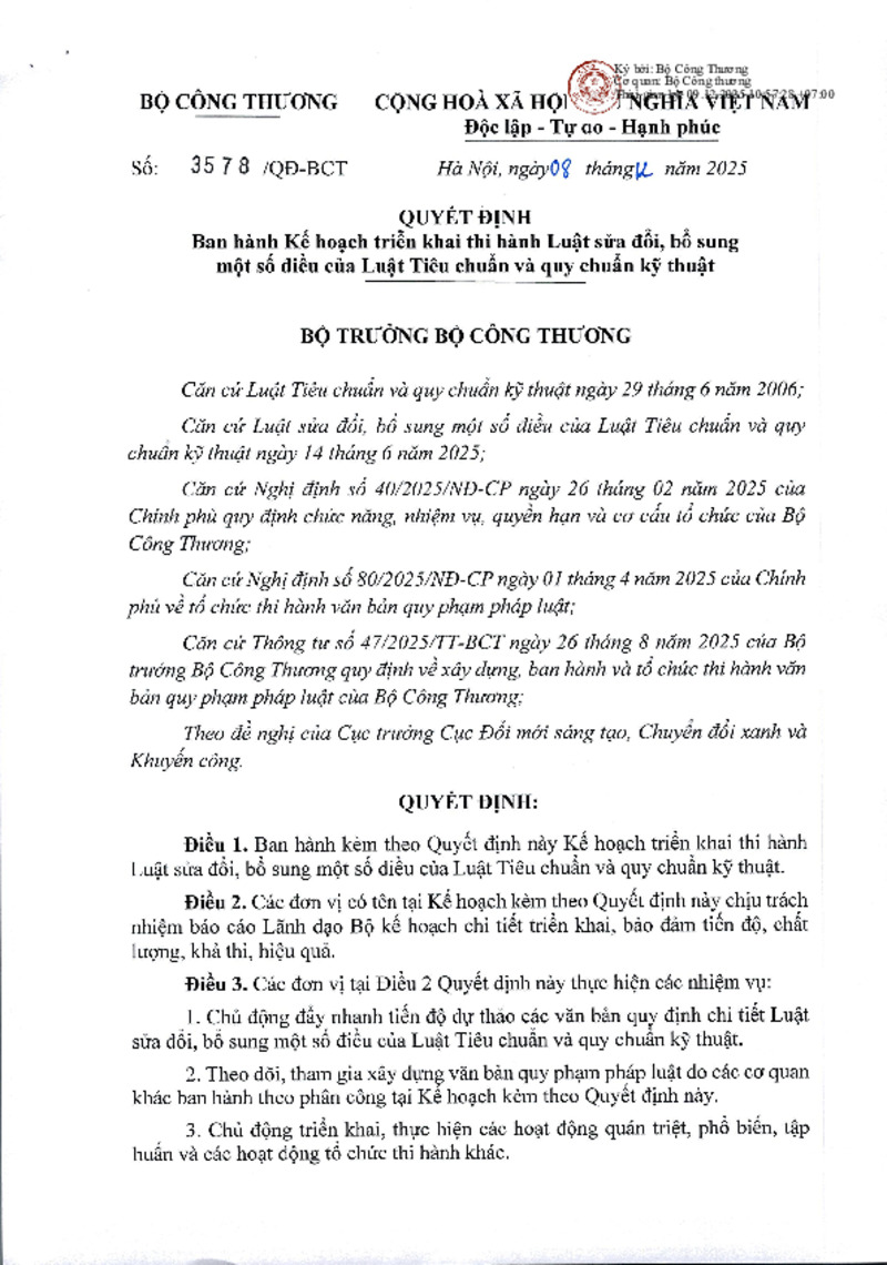 | Số hiệu | 3578/QĐ-BCT | Cơ quan ban hành | Bộ Công Thương |