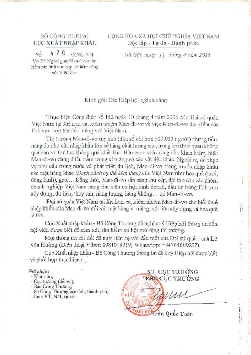 | Số hiệu | 420/XNK-NH | Cơ quan ban hành | Bộ Công Thương |