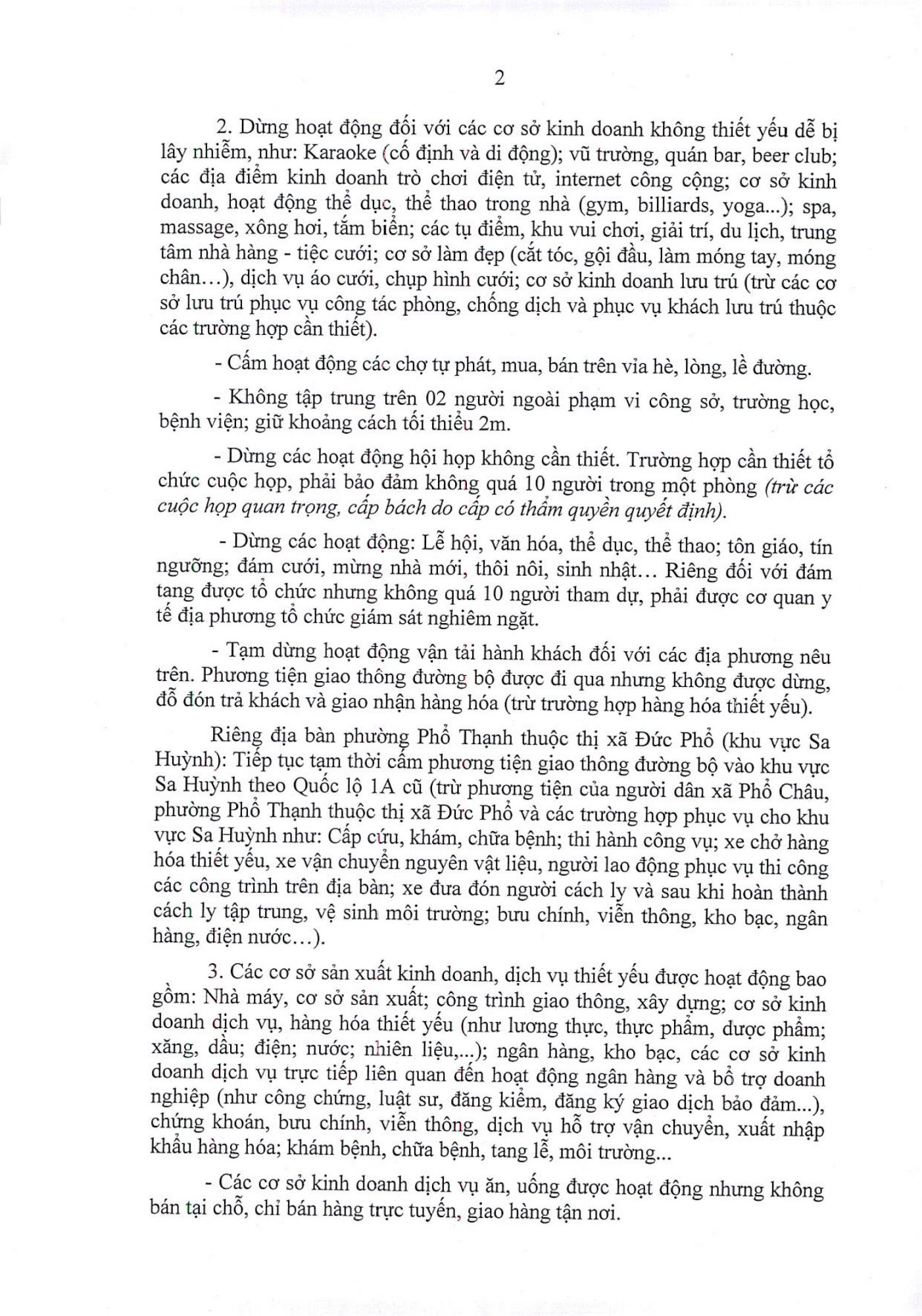 Quảng Ngãi: Áp dụng giãn cách xã hội theo Chỉ thị 16 cho 9 huyện, thị xã, thành phố từ 12 giờ ngày 28/8