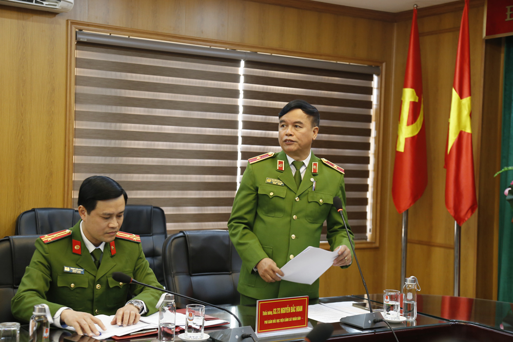 Thiếu tướng Nguyễn Đắc Hoan, Phó Giám đốc Học viện Cảnh sát nhân dân đọc diễn văn khai giảng chương trình tập huấn
